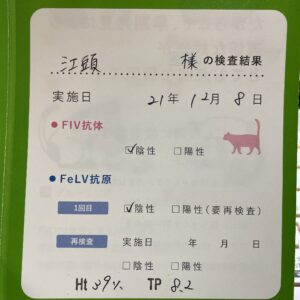 第1話でも書いたのですが、保護してすぐの検査では正しい判定がでないかもしれない猫エイズ(FIV)と猫白血病(FeLV)の検査。