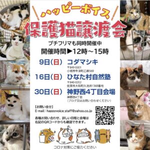 ここ最近はたくさんの猫達がずっとのお家を探して参加しているそうですので、ねこの家族をお探しの方はぜひ譲渡会場へ。