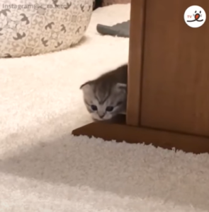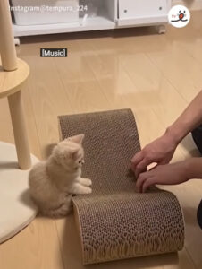 子猫に爪とぎのやり方を教えています。オチはお察しかもしれませんが・・とってもかわいいのでぜひ最後までご覧ください。