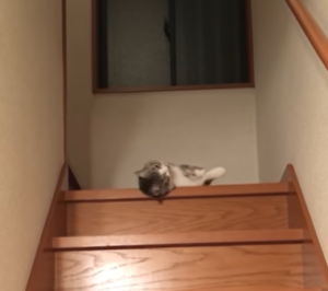 猫は液体。よく聞くコトバですが、この動画の猫はまさに液体。階段の上から液体が流れてきますよ~