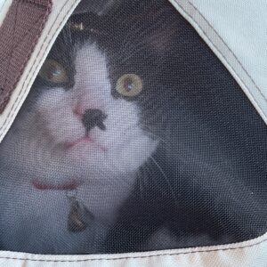 病院に向かうキャリーの中のムーン。移動が長くてちょっとご機嫌ななめ