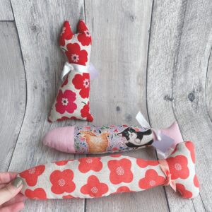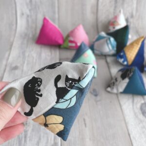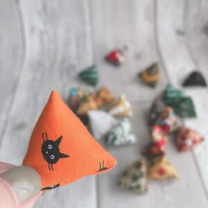 まきびし(大)1個、(小)2個、シャンデリア1つがセットになっています。写真奥のテトラの中にまきびしなどを入れておくと、にゃんこがちょいちょいっと引っ張り出して遊ぶ知育玩具になってます☆☆