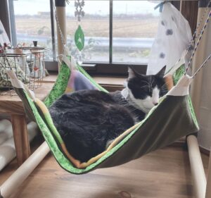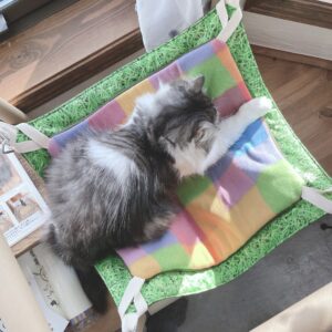 芝生柄のにゃんもっくに、冬用フリースニャンモックの重ねづけ。