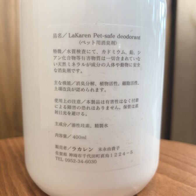 天然成分のみで作られた無香料・無着色のペット用消臭剤
