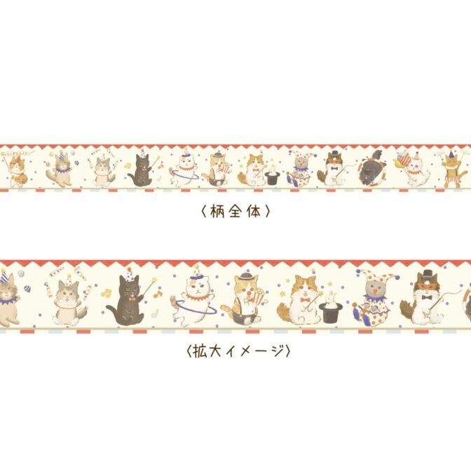 ねこマステ|マスキングテープ サーカス 猫 ねこ柄 猫雑貨 ねこモチーフ かわいい 文具 手帳デコ