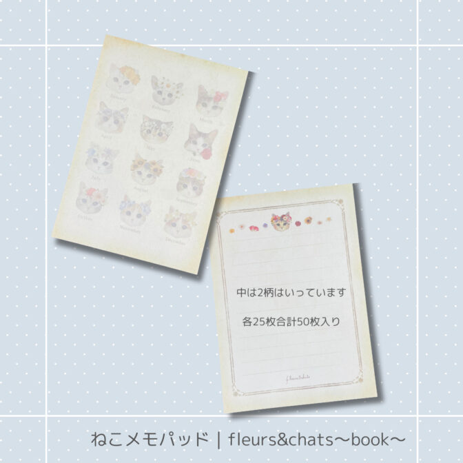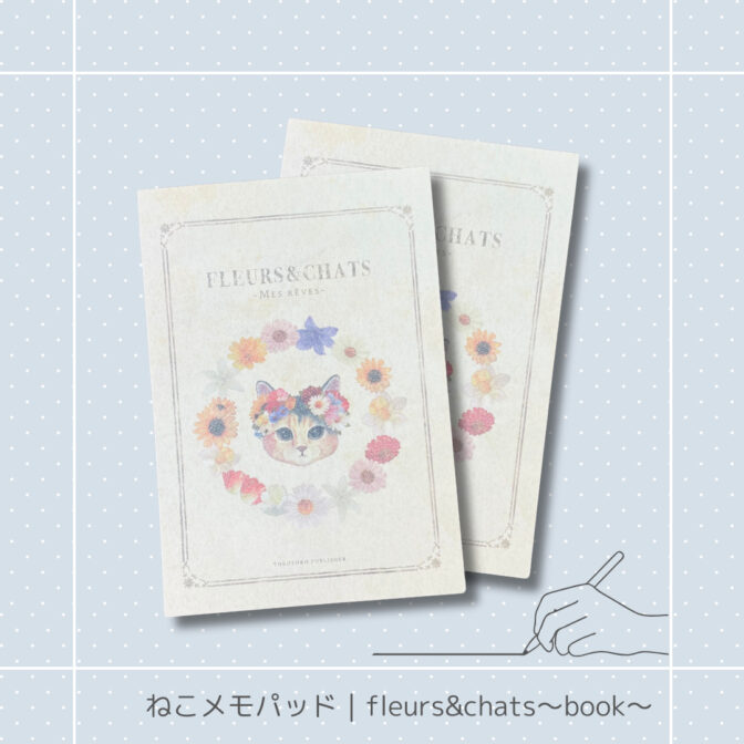 きれいな花飾りを頭にのせたネコたちが描かれた「fleurs&chats」のメモパッドが登場です。