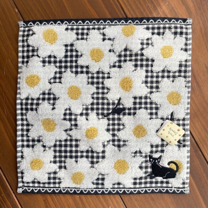 タオルハンカチ|フラワーギンガム ハンドタオル猫雑貨 猫柄 猫グッズ 無撚糸 ふわふわ プレゼント プチギフト 贈り物