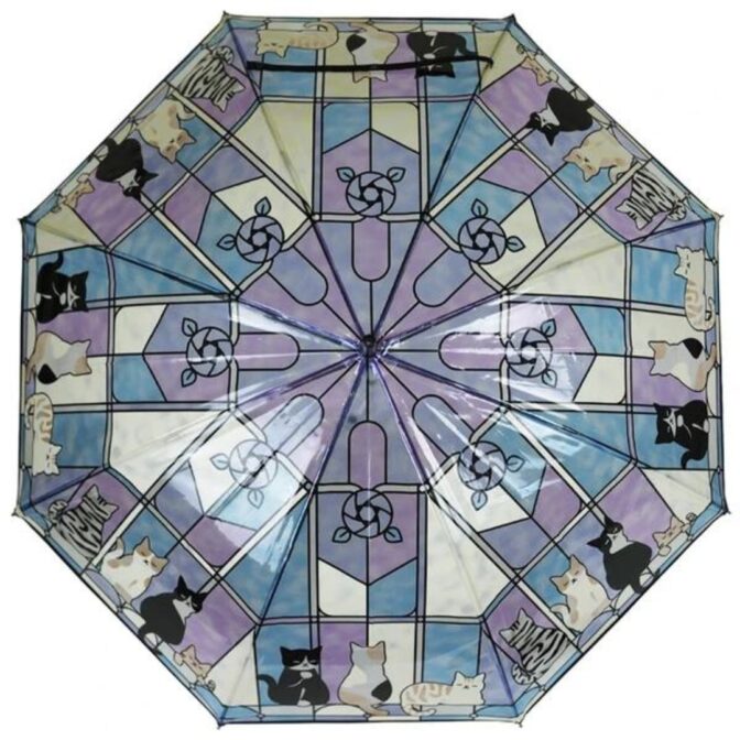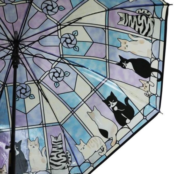 傘|猫柄| 猫雑貨 猫モチーフ ハチワレ猫 猫柄 猫グッズ かさ かわいい傘 プレゼント 贈り物 ステンドグラス風